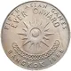 Symbol of Asian Games, the sun with 16 rays, with motto above and conjoined 20 circles below, inscriptions around |