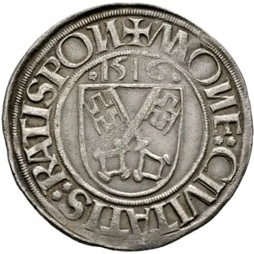 | Obverse lettering | MONE:CIVITATIS:RATISPON .1516. |