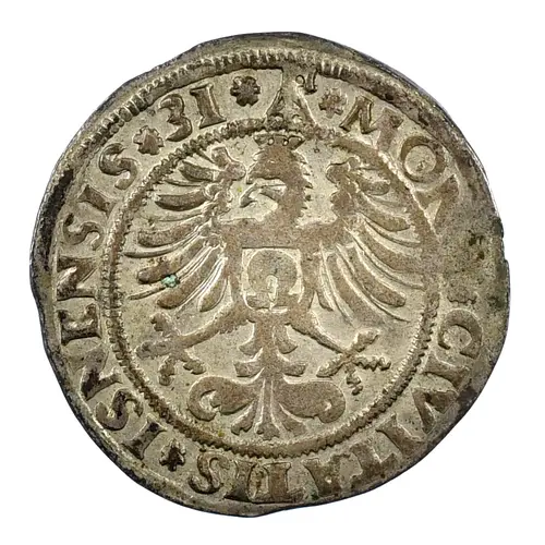 | Obverse lettering | * MONE * CIVITATIS * ISNENSIS * 31 * |