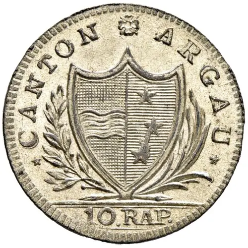 | Obverse lettering | CANTON ARGAU 10·RAPP: |