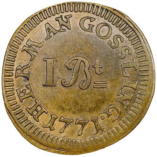 | Obverse lettering | 1 Bt HERMAN GOSSLING |