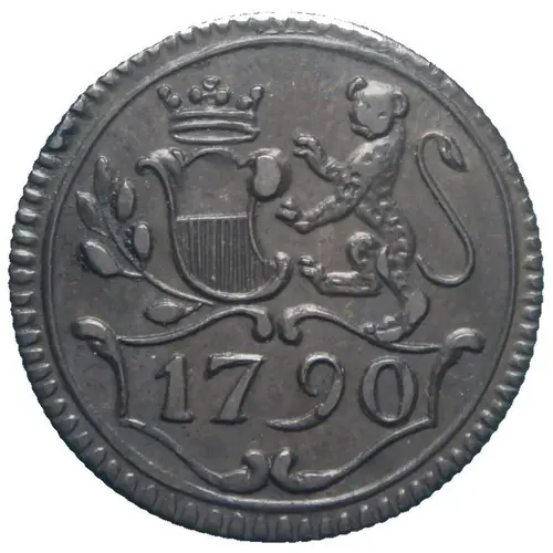 | 正面描述 | City arms held by panther, branch at left has 9 leaves, date below. |