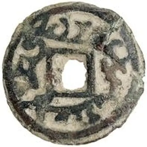 | Reverse description | Tamgha of Pendjikent to the right of the hole with an additional tamgha made of the runic letters OQ to the left. |