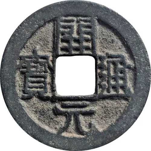Artistry: The design of the Kaiyuan Tongbao is renowned for its calligraphic excellence, traditionally attributed to the master Ouyang Xun. Executed in a powerful and balanced regular script (kaishu), the four characters (開元通寶) are arranged clockwise around the central square hole. This specific variety is distinguished by a small dot, often found above the top character "開" or elsewhere, which served as a potential mint mark, assay indicator, or numerical denotation. This aesthetic set a benchmark for subsequent Chinese cash coin designs.