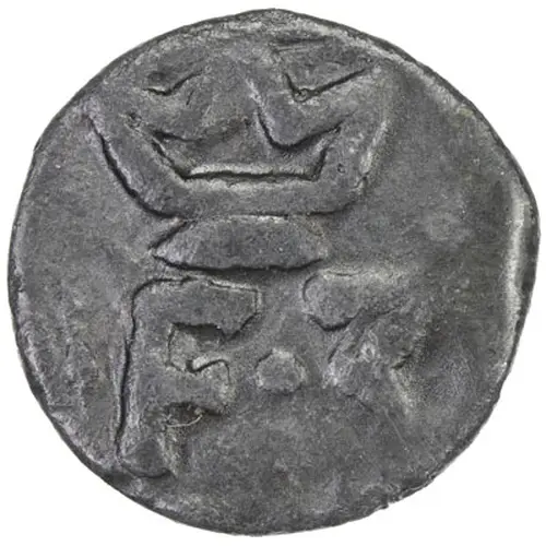 | Reverse description | Crowned Norse lion left, on curved battle-axe, letter E behind the lion. |