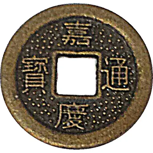 | Obverse description | Chinese ideograms - Top to bottom: 嘉慶 = Jiaqing, 7th emperor of the Qing dynasty (Manchu) 1796-1820. - Right to left: 通寶 = Tong bao, means currency |