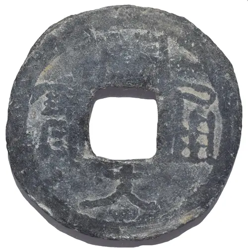 | Descrição do anverso | Crude Chinese inscriptions around square hole. |