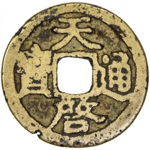 | نوشتههای روی سکه | 天 寶 通 啟 (Translation: Tian Qi Tong Bao Tianqi (3rd era of Xu Shouhui, 1358) / Universal currency) |