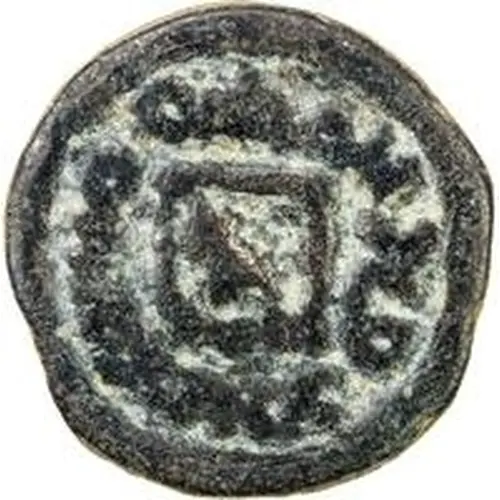 Reverse description Tamgha of Türgesh in the shape of a stylized runic letter am, all with one runic character R to the left and one Chinese ideogram below.
