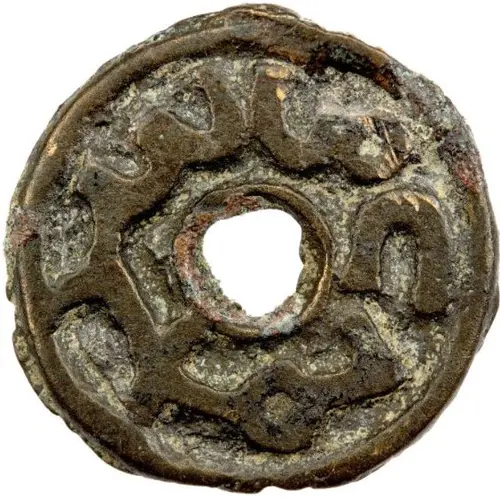 Artistry: Individual engravers are unidentifiable for this period and region. Stylistically, Vakhsh Valley coinage exhibits a syncretic blend of residual Sasanian iconography, local Hephthalite-Turkic tamghas, and early Islamic abstract elements. Designs are often simplified, highly stylized, or anepigraphic, prioritizing functional recognition. As a "Cash," designs were robust, easily reproduced, and featured central motifs like stylized busts, animals, or geometric patterns, characteristic of frontier mints.