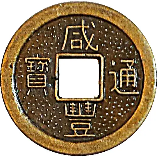 | Obverse description | Chinese ideograms - Top to bottom: 咸豐 = Xianfeng, 9th emperor of the Qing dynasty (Manchu) 1850-1861. - Right to left: 通寶 = Tong bao, means currency |
