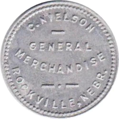| Obverse lettering | C. NIELSON GENERAL MERCHANDISE ROCKVILLE, NEBR. |