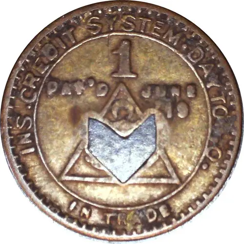 | Obverse lettering | INS. CREDIT SYSTEM DAYTON O. 1 PAT’D JUNE ’19 IN TRADE |