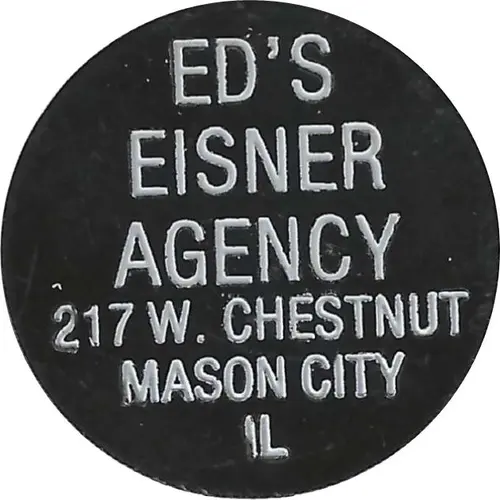 | Obverse lettering | ED’S EISNER AGENCY 217W. CHESTNUT MASON CITY IL |