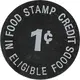 | Reverse lettering | FOOD STAMP CREDIT 1₵ IN ELIGIBLE FOODS |