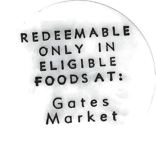 | Obverse lettering | REDEEMABLE ONLY IN ELIGIBLE FOODS AT: GATE’S MARKET |