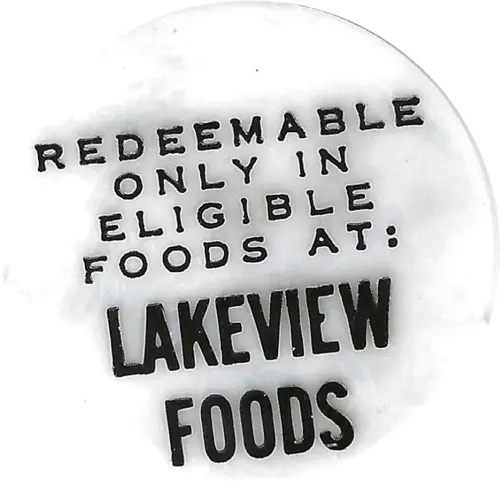 | Obverse lettering | REDEEMABLE ONLY IN ELIGIBLE FOODS AT: LAKEVIEW FOODS |