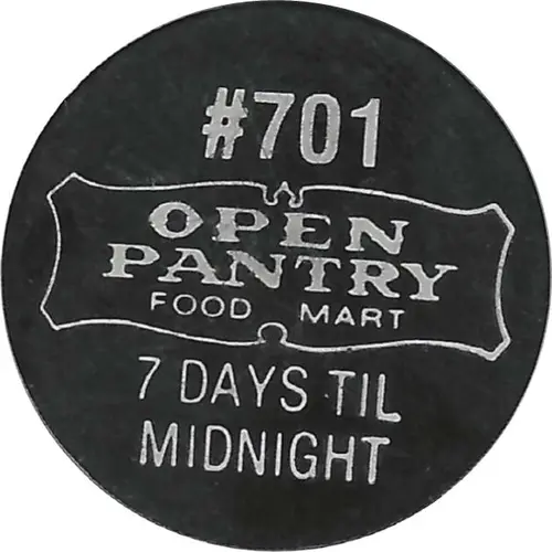 | Obverse lettering | #701 OPEN PANTRY FOOD MART 7 DAYS TIL MIDNIGHT |