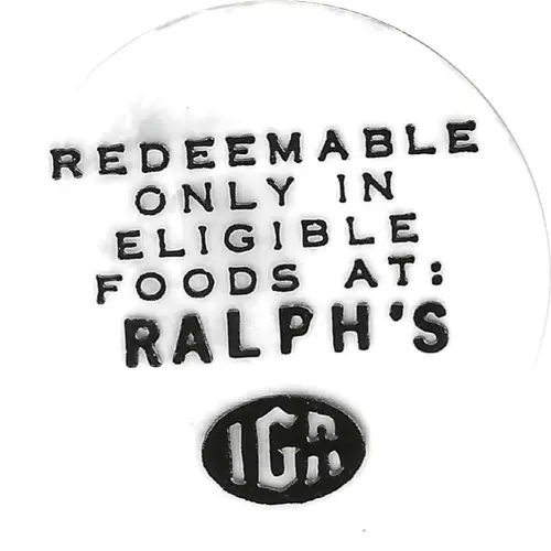 | Obverse lettering | REDEEMABLE ONLY IN ELIGIBLE FOODS AT: RALPH’S |