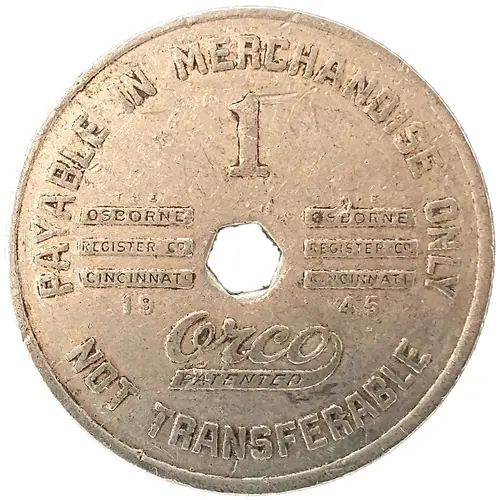 | Aversbeschreibung | Cutout center, denomination above, company logo `Orco` below, lettering around |