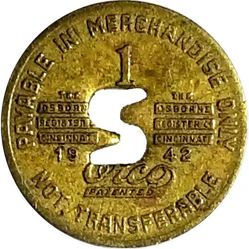 | Legenda do anverso | PAYABLE IN MERCHANDISE ONLY 1 THE OSBORNE REGISTER Co CINCINNATI THE OSBORNE REGISTER Co CINCINNATI 1942 ORCO PATENTED NOT TRANSFERABLE |