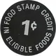 | Reverse lettering | FOOD STAMP CREDIT 1₵ IN ELIGIBLE FOODS |