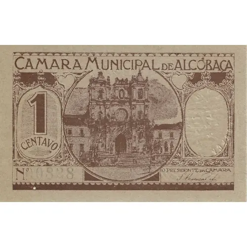 | Obverse lettering | CAMARA MUNICIPAL DE ALCOBAÇA 1 CENTAVO (Translation: City Council of Alcobaça 1 cent) |