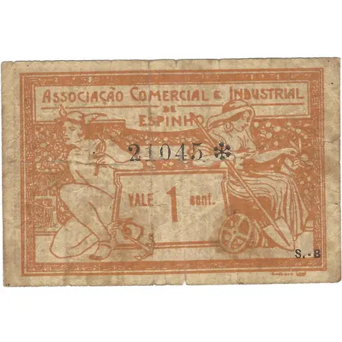 | Obverse lettering | ASSOCIAÇÃO COMERCIAL E INDUSTRIAL DE ESPINHO VALE 1 cent. (Translation: Commercial and Industrial Association of Espinho Worth 1 cent) |