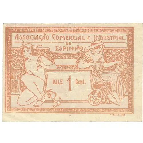 | Obverse lettering | ASSOCIAÇÃO COMERCIAL E INDUSTRIAL DE ESPINHO VALE 1 Cent. (Translation: Commercial and Industrial Association of Espinho Worth 1 cent) |