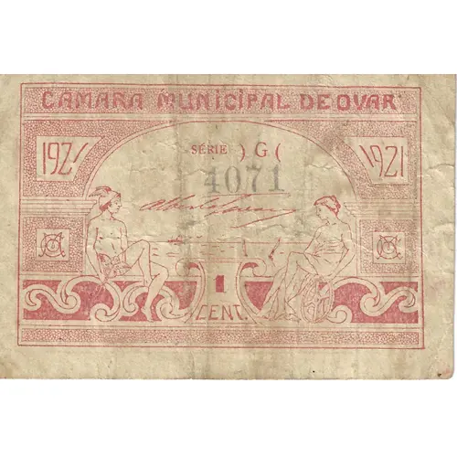 | Obverse lettering | CAMARA MUNICIPAL DE OVAR 1921 SÉRIE G 1 CENT (Translation: City Council of Ovar 1921 Series G 1 Cent) |