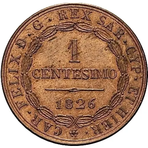| Obverse lettering | CAR·FELIX D·G·REX SAR·CYP·ET HIER· 1 CENTESIMO 1826 |
