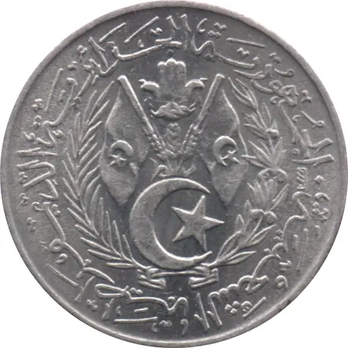 Artistry: The design of the 1964 1 Centime reflects a post-colonial aesthetic, blending national symbolism with functional clarity. While a specific engraver is typically uncredited, the stylistic approach aligns with modern nationalism. The obverse prominently features the national emblem of the crescent and star, a potent symbol of Islam and identity, encircled by the country's name in Arabic. The reverse displays the denomination "1 CENTIME" and the Gregorian date "1964," often framed by clean lines, reflecting the republic's aspirations.