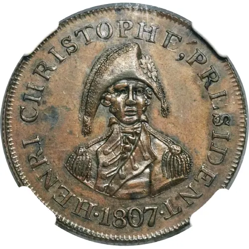 Historical Context: The 1807 1 Centime Essai emerges from a pivotal and tumultuous period in Haitian history. Following the 1806 assassination of Emperor Jean-Jacques Dessalines, Haiti fractured into the northern State under Henri Christophe and the southern Republic under Alexandre Pétion. This pattern coin likely represents an attempt by Christophe's State of Haiti to establish a distinct and legitimate monetary system, underscoring the nascent nation's struggle for stability and economic self-determination post-independence.