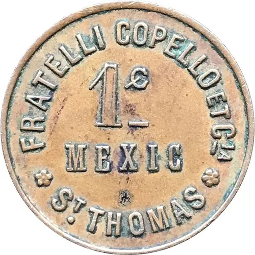 | Obverse lettering | 1 Cents Fratelli Copello Et CIA St. Thomas Mexic |