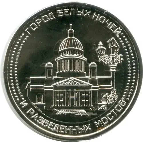 | Obverse lettering | ГОРОД БЕЛЫХ НОЧЕЙ И РАЗВЕДЕННЫХ МОСТОВ (Translation: The city of white nights and of moveable bridges) |