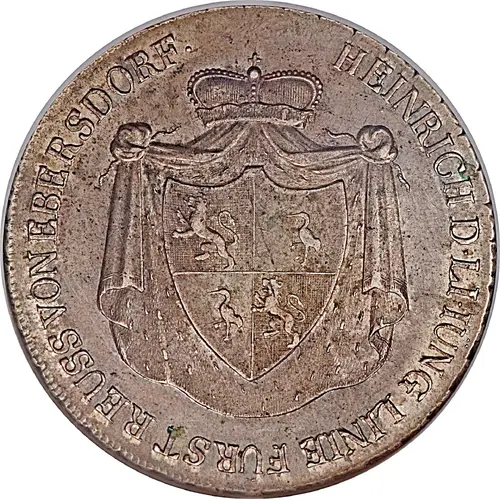 | Obverse lettering | HEINRICH D · LI · IÜNG · LINIE FÜRST REUSS VON EBERSDORF· |