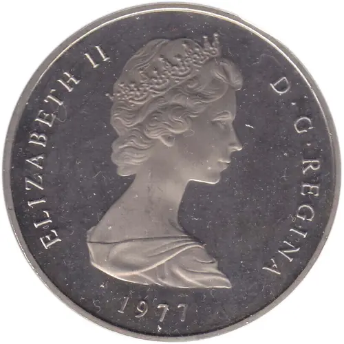 | Obverse lettering | ELIZABETH II D · G · REGINA 1977 |
