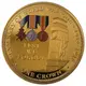| Reverse description | Central monument and colored medals with legend around and denomination below. |
