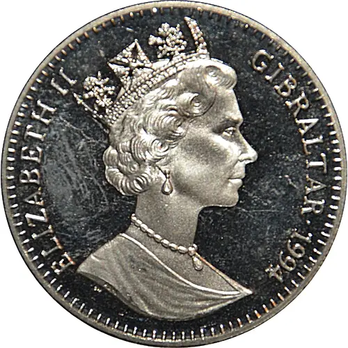 | Obverse lettering | ELIZABETH II GIBRALTAR • 1994 RDM PM |