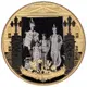 A photograph featuring the new royal family, following the coronation of King George VI in May 1937. The gates of Buckingham Palace border the image and at the bottom, a bouquet of flowers is depicted together with a ribbon with the inscription that reads ‘DEVOTED TO YOUR SERVICE’. |