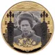 A photograph of the Queen when she showed her solidarity with the families of the Welsh mining village after the devastation of the Aberfan disaster in October 1966. The gates of Buckingham Palace border the image and at the bottom, a bouquet of flowers is depicted together with a ribbon with the inscription that reads ‘DEVOTED TO YOUR SERVICE’. |