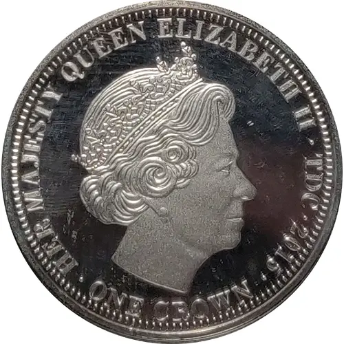 | Obverse lettering | HER MAJESTY QUEEN ELIZABETH II·TDC·2015 · ONE CROWN · |
