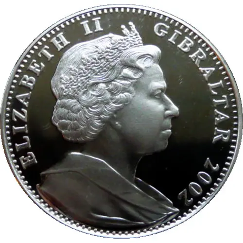 | Obverse lettering | ELIZABETH II GIBRALTAR 2002 IRB |