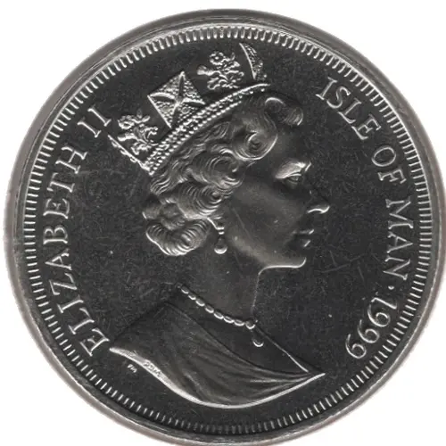 | Obverse lettering | ELIZABETH II ISLE OF MAN · 1999 |