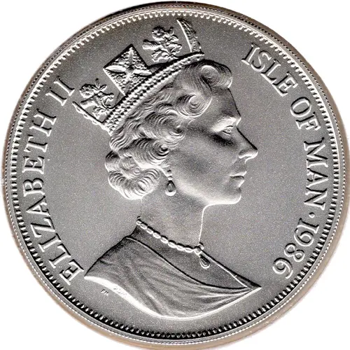 | Obverse lettering | ELIZABETH II ISLE OF MAN · 1986 PM |