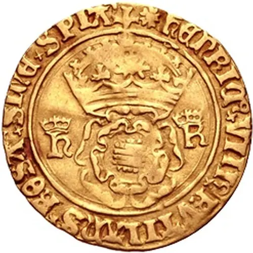 | Obverse lettering | hEnRIC’ · VIII’ · RVTILAnS · ROSA · SInE’ · SPIA’ (Translation: Henry the Eighth a dazzling rose without a thorn) |