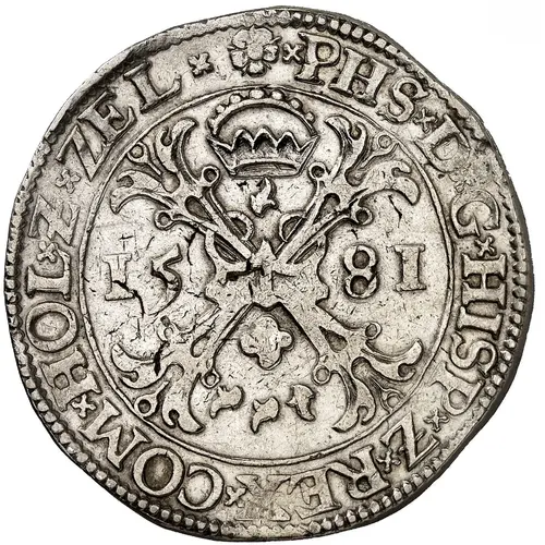 ❀ x PHS : D x G x HISP x Z x REX x COM x HOL x Z x ZEL x (Translation: Philip, By the Grace of God, King of Spain, Count of Holland and Zeeland) |