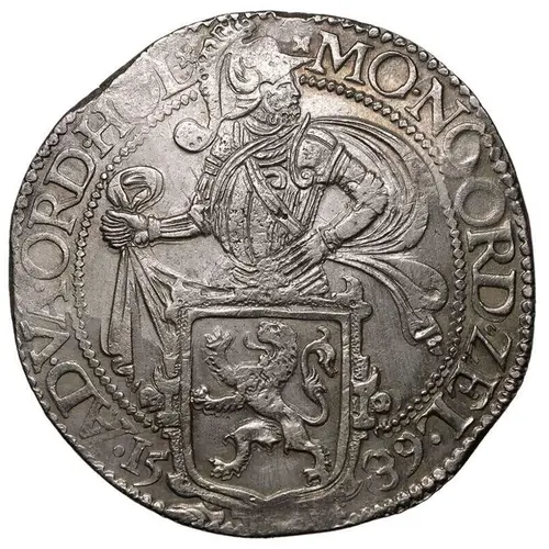 | توضیحات روی سکه | Armoured knight facing rigth behind coat of arms of Holland |