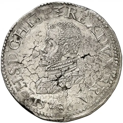 | Obverse lettering | ·PHS:D:G:HISP Z REX·DVX·BRA· 15 86 |