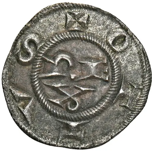 | Obverse description | Castle or gateway with three towers; two pellets above, one at each side, one in center. All within reeded circle. |